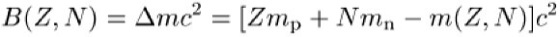 wobei mp die Protonenmasse, mn die Neutronenmasse, m(Z,N) die Masse des betreffenden Atoms und c die Lichtgeschwindigkeit ist.