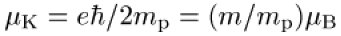 (mp: Protonmasse, e: Elementarladung, m: Elektronmasse, μB: Bohrsches Magneton).