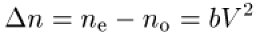 Kerr-Effekt, elektrooptischer Effekt, quadratischer, spannungsabhängige Doppelbrechung in Flüssigkeiten. Flüssigkeiten aus anisotropen Molekülen, z.B. Nitrobenzol (C6H5NO2), werden bei Anlegen einer Spannung doppelbrechend. Die Differenz des außerordentlichen (ne) zum ordentlichen (no) Brechungsindex (Doppelbrechung) ist dabei proportional zum Quadrat der angelegten Spannung V,