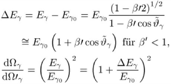 bzw. eines Elektrons der kinetischen Energie Ee bekannt und wird gesondert berücksichtigt. Experimentell wichtig ist die Doppler-Verschiebung ΔEγ und die Raumwinkelveränderung