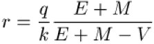 ist mit q = ((EV)2M2)1 / 2 dem Impuls unter dem Potential V und k = (E2M2)1 / 2 dem Impuls im freien Bereich. Für