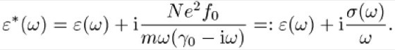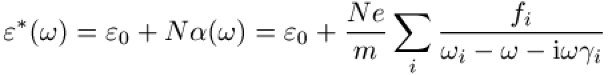 (α(ω): komplexe Polarisierbarkeit, N, m: Dichte und Masse der atomaren Resonatoren, fi, ωi, γi: Oszillatorstärke, Resonanzfrequenz und Dämpfungskonstante der verschiedenen Resonanzen). Für freie Elektronen im Leiter kann ε*(ω) in einen Isolator-Anteil ε(ω) und einen Leiter-Anteil aufgetrennt werden: