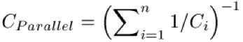 Bei einer Parallelschaltung von n Kondensatoren mit Kapazitäten Ci ergibt sich die Gesamtkapazität C als Kehrwert der Summe der inversen Einzelkapazitäten: