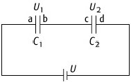 Kondensator 4: Bei Reihenschaltung addieren sich die Spannungen, mithin die Kehrwerte der Kapazitäten.