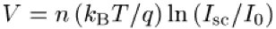 der Solarzelle, Isc: Kurzschlußstrom, I0: Sperrstrom, n: Idealitätsfaktor, mit n ˜ ln(C), C: Konzentrationsfaktor.