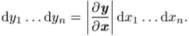 abbildet und damit den Übergang von Koordinatensystemen ermöglicht. Spezielle Koordinatentransformationen sind Verschiebungen und Drehungen. Koordinatentransformationen werden in der Physik u.a. auch dazu verwendet, physikalische Größen wie Skalare, Vektoren und Tensoren zu klassifizieren. Die differentiellen Volumenelemente beider Koordinatensysteme sind durch die Jacobi-Determinante verknüpft: