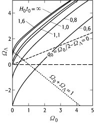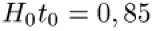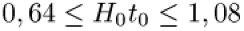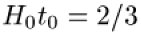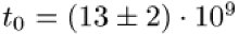 ) Milliarden Jahre. Dieser Wert stellt eine untere Grenze für t0 dar. Zur Ermittlung der Entstehungszeit der ältesten Sterne rechnet man etwa 1 Milliarde Jahre hinzu. Insgesamt ergäbe sich somit ein Weltalter von ![]()