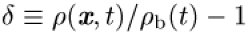 Die modernen kosmologischen Theorien gehen davon aus, daß diese Strukturen sich aus anfänglich kleinen Schwankungen einer gleichförmigen Hintergrunddichte entwickelt haben, allein durch die Wirkung der Schwerkraft. Der Dichtekontrast ![]()