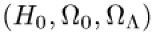 (bzw. dem dimensionslosen Parameter h = H0 / (100 km s-1Mpc-1)), die die momentane Expansionsgeschwindigkeit angibt, noch zwei Parameter. Geeignet sind etwa die Dichteparameter![]()