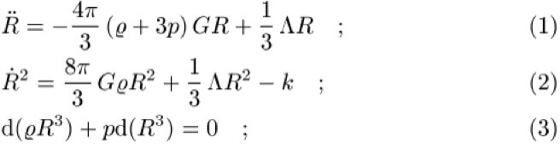 , folgt aus je zwei der Gleichungen (1) bis (3) die dritte. Die Dynamik des kosmologischen Modells ist bestimmt, falls