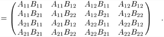 Kronecker-Produkt, das direkte Produkt zweier Matrizen; auch Tensor-Produkt genannt. Für zwei