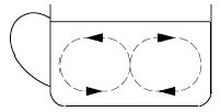 Beispiele aus Mechanik und Akustik sind das Platzen von Würstchen in Längsrichtung bzw. das Singen von Gläsern. Der ›Teeblättereffekt‹ – die Tatsache, daß sich beim Umrühren Teeblätter o.ä. in der Mitte des Gefäßbodens sammeln – ist ein Beispiel aus der Strömungsmechanik. Zu diesem Effekt kommt es, weil in Bodennähe größere Reibung, also geringere Fließgeschwindigkeit, also geringere Zentrifugalkraft herrscht; insgesamt ergibt sich eine Druckdifferenz, die zu der in Abb.1 gezeigten Zirkulationsströmung führt. Der Coanda-Effekt zeigt sich als ›Teekanneneffekt‹, wenn Flüssigkeiten beim Ausgießen an der Gefäßwand anliegen.