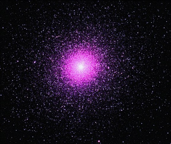 Kugelsternhaufen 1: Zentralbereich des größten Kugelsternhaufens unseres Milchstraßensystems, Omega Centauri. Er ist 5 000 pc von der Sonne entfernt und beinhaltet 5 · 106 Sonnenmassen.