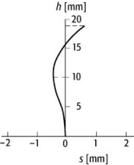 Längsabweichung: Rohrsche Darstellung der Längsabweichung. Dabei wird der Abstand Δs des Schnittpunktes eines Strahles mit der optischen Achse von der Gaußschen Bildebene bzw. des Brennpunktes aufgetragen. Die betrachteten Strahlen sind durch ihre Einfallshöhe h gekennzeichnet.