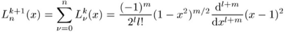 , sind Lösungen der Laguerreschen Differentialgleichung, die meist im Zusammenhang mit der Separation der Variablen bei der Lösung der Laplacegleichung in Kugelkoordinaten, z.B. bei der Lösung der Schrödingergleichung des Wasserstoffatoms, auftritt. Sie bilden ein vollständiges orthogonales Funktionensystem. Die zugeordneten Laguerre-Polynome