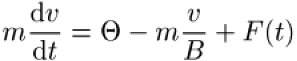 für die Geschwindigkeit v von Partikeln der Masse m, der Beweglichkeit B und der äußeren Kraft Θ. In einer stochastischen Betrachtungsweise ist die Zufallskraft F(t) ein stochastischer Prozeß, also eine zeitabhängige Zufallsvariable, die den stochastischen Prozeß v(t) generiert.