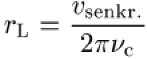 Larmor-Radius, Gyrationsradius, Radius der Kreisbewegung (Gyration) geladener Teilchen in einem Magnetfeld. Der Larmorradius rL hängt mit der Zyklotronfrequenzνc und der Geschwindigkeitskomponente senkrecht zum Magnetfeld vsenkr. gemäß