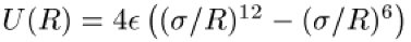 Lennard-Jones-Potential, semi-empirische Formel zur Beschreibung des Wechselwirkungspotentials U zwischen Atomen mit dem Abstand R in Edelgaskristallen. Sie entsteht durch Kombination des anziehenden Potentials der Van-der-Waals-Kräfte mit einem empirischen Abstoßungspotential, das oft zu A / R12 angenommen wird: