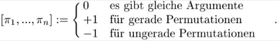 Levi-Civita-Tensor, Permutationstensor, ein n-fach indizierter Pseudotensor, der antisymmetrisch in der Vertauschung zweier Indizes ist. Der kovariante Levi-Civita-Tensor zu einer beliebigen Basis und Determinante g des Metriktensors