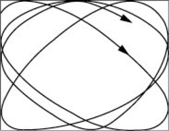Lissajous-Figuren 2: Ist das Verhältnis der Frequenzen nicht rational, schließt sich die Lissajous-Schleife nie.
