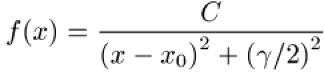(x0: Maximum der Verteilung, γ: Halbwertsbreite). Die Normierungskonstante C ist in der Regel so gewählt, daß das Integral über den gesamten Definitionsbereich der Funktion 1 ergibt.