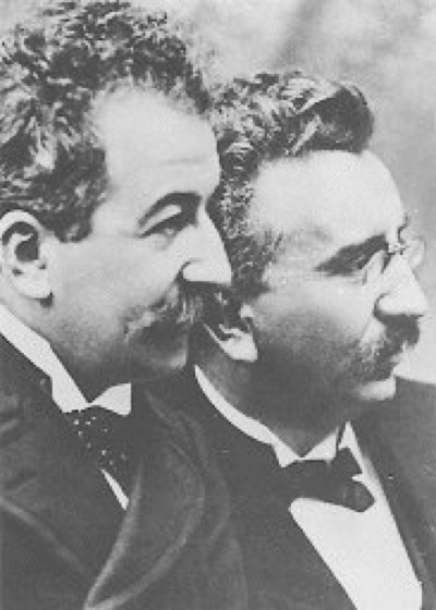 Lumière, Auguste Marie Louis Nicolas, französischer Chemiker und Phototechniker, *19.10.1862 Besançon, †10.4.1954 Lyon; erfand 1894 mit seinem Bruder Louis Jean Lumière (*5.10.1864 Besançon, †6.6.1948 Bandol) den Cinématographe, zugleich Aufnahmegerät und Projektor, und 1903 die Autochromplatte; förderte mit seinem Bruder die Photographietechnik und führte 1895 in Frankreich zum ersten Mal einen 20 m langen Film vor.
