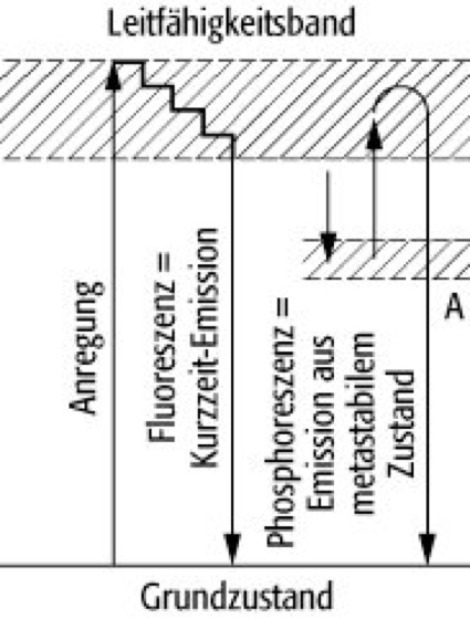 Je nach der speziellen physikalischen Natur der Lumineszenz unterscheidet man zwischen der Phosphoreszenz und der Fluoreszenz.