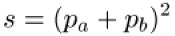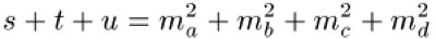 hat eine besonders wichtige und einfache Interpretation; sie ist das Quadrat der Schwerpunktsenergie des Streuprozesses. Addiert man die Mandelstam-Variablen, so erhält man die Beziehung