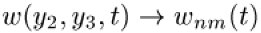 die Übergangswahrscheinlichkeit zwischen den Werten y2 und y3 angibt. Ist die betrachtete Zufallsvariable eine diskrete Zahl n, so nimmt diese Master-Gleichung ihre bekanntere Form mit der Wahrscheinlichkeit pn(t) für das Auftreten des Wertes n zur Zeit t und der Ersetzung