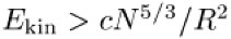 . Für die potentielle Energie nehmen wir an, daß sich die Ladungen abwechselnd positiv und negativ verteilen. Dann hat jede Ladung umgekehrt geladene Nachbarn, und das Feld der Ladungen weiter weg wird abgeschirmt. Die potentielle Energie wird dann -e2N / (Abstand zum nächsten Nachbarn) ˜ -e2N4 / 3 / R. Das Minimum der Summe beider Energien ergibt sich für R ˜ N-1 / 3 zu EN ˜ -N5 / 3. Nur wenn durch Fermi-Dirac-Statistik die kinetische Energie pro Teilchen nicht mit R-2, sondern mit (R / N1 / 3)-2 ansteigt, ergibt sich ein Minimum für R ˜ N1 / 3, das wie EN ˜ -N geht. Dieses Argument ist natürlich sehr roh und nicht schlüssig, man sieht aber folgendes: