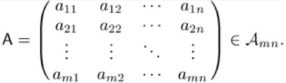 eines Körpers K mit m Zeilen und n Spalten, für das bestimmte Rechenregeln zur Addition, Multiplikation und Inversion oder Transposition definiert sind: