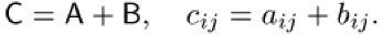 , zugeordnet werden, mit deren Hilfe sich bestimmen läßt, ob die Matrix regulär, d.h. invertierbar ist. Das Konzept der Matrix spielt eine wichtige Rolle in der linearen Algebra, da es zwischen linearen Abbildungen und Matrizen eine ein-eindeutige Beziehung gibt. Darüber hinaus sind Matrizen wegen ihrer kompakten Form sehr nützlich bei der Formulierung und Lösung linearer Gleichungssysteme oder linearer Ausgleichsprobleme. Die Addition von Matrizen ist definiert durch