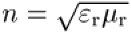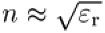 (n: Brechzahl, εr = ε / ε0: relative Dielektrizitätskonstante, μr = μ / μ0: relative Permeabilität, ε0, μ0: Dielektrizitätskonstante bzw. Permeabilität des Vakuums). Da μr in fast allen Stoffen außer den Ferromagnetika nahezu 1 beträgt und elektromagnetische Wellen sich in jenen nicht ausbreiten können, wird die Relation auch oft als