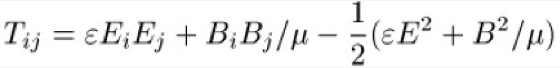 Maxwellscher Spannungstensor, Tij, ein dreidimensionaler symmetrischer Tensor, der als Hilfsmittel bei der Berechnung elektrischer und magnetischer Kräfte bei statischen und quasistationären Feldern dient. Dabei werden die Kräfte auf Oberflächenintegrale über Spannungen zurückgeführt, die an der Oberfläche des betrachteten Volumens angreifen. Diese Berechnung ist völlig gleichwertig zur Integration über die Dichte der Lorentz-KraftfL = ρE + j × B. Tij ist definiert als