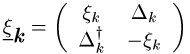im sog. Teilchen-Loch- oder Nambu- Raum möglich. Diese Matrixstruktur reflektiert die Tatsache, daß teilchen- und lochartige Anregungen des Fermi-Sees nicht mehr unabhängig voneinander, sondern durch die Bildung von Cooper-Paaren gekoppelt sind. Durch die Nambu-Matrizen werden die Gleichungen zur Beschreibung der Supraleitung denen des Normalzustands formal ähnlich.