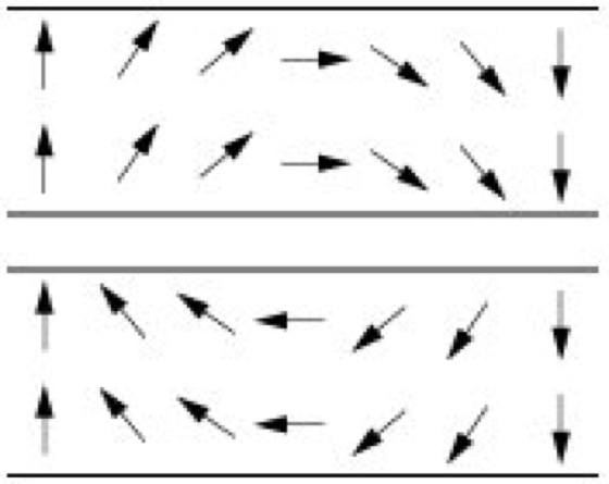 Néel-Wand: Zwei Néel-Wände entgegengesetzter Polarität.