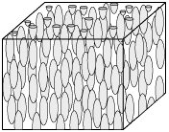 nematische Phase 1: Schemazeichnung der nematischen Phase eines Flüssigkristalls.