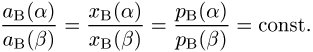 Diese Konstante C = aB(α) / aB(β) wird Nernstscher Verteilungskoeffizient genannt. Für ideal verdünnte Lösungen ist speziell auch das Verhältnis der Molenbrüche xi und nach dem Henryschen Gesetzxi = Aipi, auch das Verhältnis der Partialdrücke des gelösten Stoffes konstant: