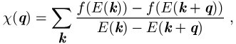 entstehen in der Summe über die ganze erste Brillouin-Zone dann große Beiträge, wobei der Vekor q besetzte und unbesetzte Zustände verbindet (die Besetzungswahrscheinlichkeit erfolgt gemäß der Fermi-Verteilung (Kernladungsverteilung)) und die Bandenergien an diesen Stellen im k-Raum gleich sind.