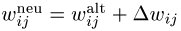 die Stärke einer beliebigen Synapse zwischen Neuron j und Neuron i im Netzwerk darstellt.