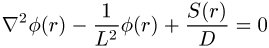 unter der für thermische Neutronen realistischen Annahme fehlender Energieabhängigkeit, isotroper Medien und Quellen der Stärke S(r) beschrieben. Der Diffusionskoeffizient D bestimmt sich bei isotroper Streuung zu