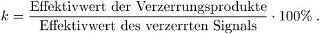 nichtlineare Verzerrungen, Veränderungen eines Signals bei analoger Übertragung, wenn der Zusammenhang zwischen Ein- und Ausgangssignal nicht durch eine lineare Gleichung dargestellt werden kann. Dabei entstehen im Zeitbereich typische Veränderungen der Kurvenform, z.B. durch Begrenzung, und im Spektrum erscheinen neue Signalanteile, sog. Verzerrungsprodukte, die im Eingangssignal nicht enthalten sind. Die bekannteste Meßgröße für nichtlineare Verzerrungen ist der Klirrfaktork. Zu seiner Messung wird ein Sinussignal übertragen und der Wert k nach folgender Formel berechnet: