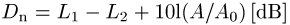 Norm-Schallpegeldifferenz, Dn, in der Bauakustik die zur Messung des Schalldämmaßes verwendete Differenz aus dem mittleren SchalldruckpegelL1 im Senderaum und dem mittleren Schalldruckpegel L2 im Empfangsraum, korrigiert mit einem Term, der die Schallabsorption im Empfangsraum berücksichtigt: