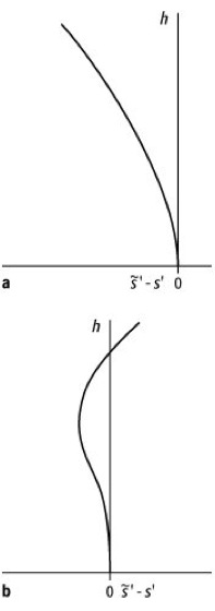 Öffnungsfehler 2: a) Δs' als Funktion von h und b) bei einer Korrektur.