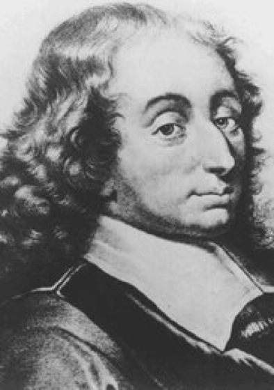 Pascal, Blaise, französischer Philosoph, Mathematiker und Physiker, *19.6.1623 Clermont-Ferrand, †19.8.1662 Paris; ab 1631 in Paris; schrieb bereits als 17jähriger eine bedeutende Abhandlung über die Kegelschnitte (›Essai sur les coniques‹, 1640), die auch das Pascalsche Prinzip enthält; konstruierte 1642 die erste Rechenmaschine mit Zehnerübertrag; entdeckte die Verwendbarkeit des Barometers zu Höhenmessungen und untersuchte das Gleichgewicht von Flüssigkeiten (1647 Entdeckung des Gesetzes der kommunizierenden Röhren), wobei er die allseitige Wirkung des Druckes erkannte; baute später im postum veröffentlichten ›Traité du triangle arithmétique‹ (1665) Kombinatorik und Wahrscheinlichkeitsrechnung weiter aus und fand dabei das Pascalsche Dreieck; neben wichtigen Vorarbeiten zur Entwicklung der projektiven Geometrie auch Untersuchungen zur Zykloide. Pascal, einer der bedeutendsten Vertreter des Jansenismus, zog sich nach einer religiösen Vision 1654 vom weltlichen Leben in das Kloster Port Royal zurück. In seinen ›Pensées‹ (1669) bemühte er sich um den philosophischen Zugang zur religiösen Wahrheit. Nach ihm ist auch die Einheit des Drucks (Pascal) benannt.