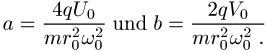 (U: angelegte Spannung, r0: Radius der Ringelektrode) einer konstanten Spannung U0 eine hochfrequente Wechselspannung der Frequenz