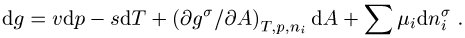 wird als spezifische freie Grenzflächenenthalpie bezeichnet. Er gibt die Änderung der freien Enthalpie des Gesamtsystems bei Änderung der Grenzflächenausdehnung um die Flächeneinheit an, wenn dabei der Druck, die Temperatur und die stoffliche Zusammensetzung unverändert bleiben.