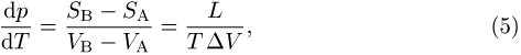 wobei S, L und das Volumen V sich jeweils auf ein Mol der Phasen A und B beziehen.
