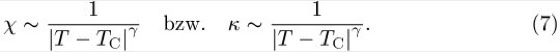 Die dimensionslose Zahl β wird auch als kritischer Exponent bezeichnet. Verschiedene Materialkonstanten divergieren am kritischen Punkt, z.B. die Suszeptibilität von Ferromagneten oder die Kompressibilität von Fluiden. Auch hier werden experimentell Potenzgesetze beobachtet: