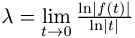 . Mit Hilfe dieser Definition kann auch ein kritischer Exponent bestimmt werden, wenn ein Potenzgesetz nur asymptotisch für t![]()